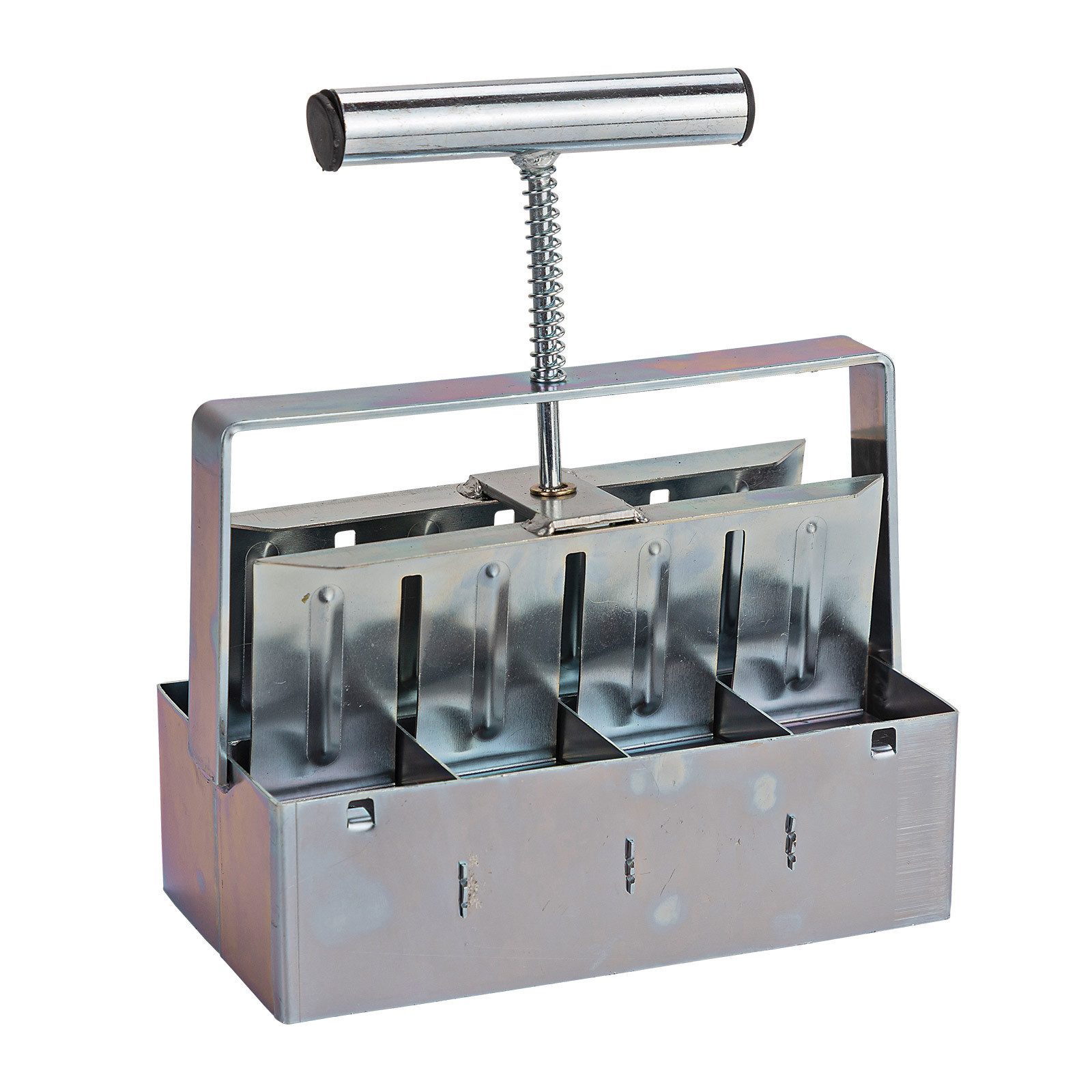 Original DEMA Erdballenpresse/Bodenblocker DEP8. Stellen Sie schnell und sicher Saatgut-Erdblöcke einfach selbst her. Ideal für Sämlinge aller Art, wie z.B. Salate, Radieschen, Tomaten usw. Als Grundmaterial dient im allgemeinen Substrat, Kokoserde, Blumenerde und natürlich auch Eigenmischungen. Die Verarbeitung ist denkbar einfach, indem die Presse mehrmals in das gut vorbereitete Medium eingedrückt wird, bis sich alle Kammern unter leichtem Druck komplett gefüllt haben. Danach die Presse auf eine ebene Unterlage stellen und die 4 Ballen vorsichtig herausdrücken. Die Form und Tiefe des Saatloches bestimmen Sie vorher, indem Sie die benötigten - im Lieferumfang enthaltenen - Formen in die Kopfhalterungen einstecken.